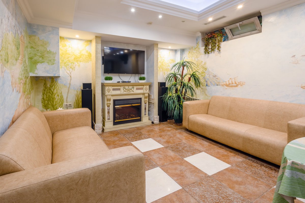 Не хочется в бассейн? Не проблема! Вместо этого можно провести время в нашей комнате отдыха. Мы постарались создать здесь комфортный, стильный интерьер из максимально натуральных, экологичных материалов, выбрать мебель, которая будет одновременно удобной и красивой. Надеемся, что вам понравится! Для создания настроения нас есть камин. Мы не располагаем собственной кухней, но не возражаем, если вы принесете еду с собой и совместите баню с импровизированным застольем. Только не забывайте, что плотная трапеза непосредственно перед посещением парной - это не самая хорошая идея, согласно мнению терапевтов. А вот после парной можно трапезничать смело!